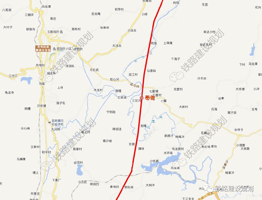 寻甸站位于昆明市寻甸县城东南侧约6公里的三岔河村附近,按县级中间站设计。本站位于直线上,站坪纵坡为平坡。