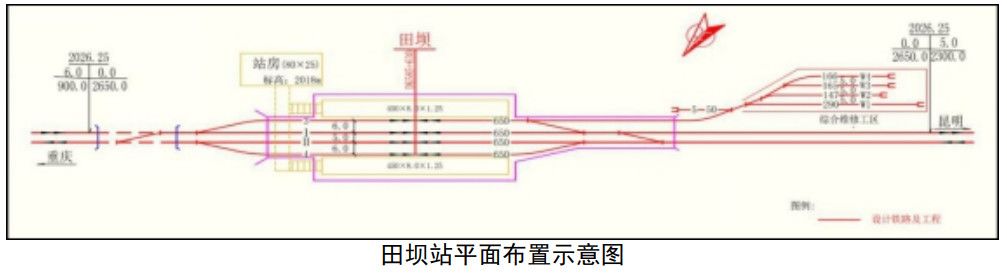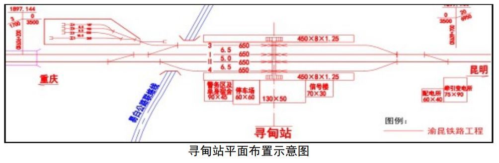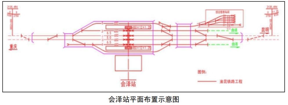 设到发线条),远期预留到发线座,远期预留侧式站台1座;重庆端线m,站房采用线侧平式。远期预留六盘水至昭通城际铁路引入条件。
