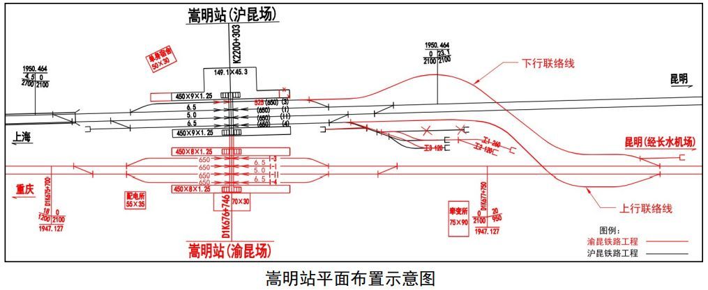 本次车站北端咽喉长昆客专与渝昆场之间联络线因渝昆高铁引入取消,同时渝昆高铁引入渝昆场前设渡线m 。其它维持原设计规模不变。