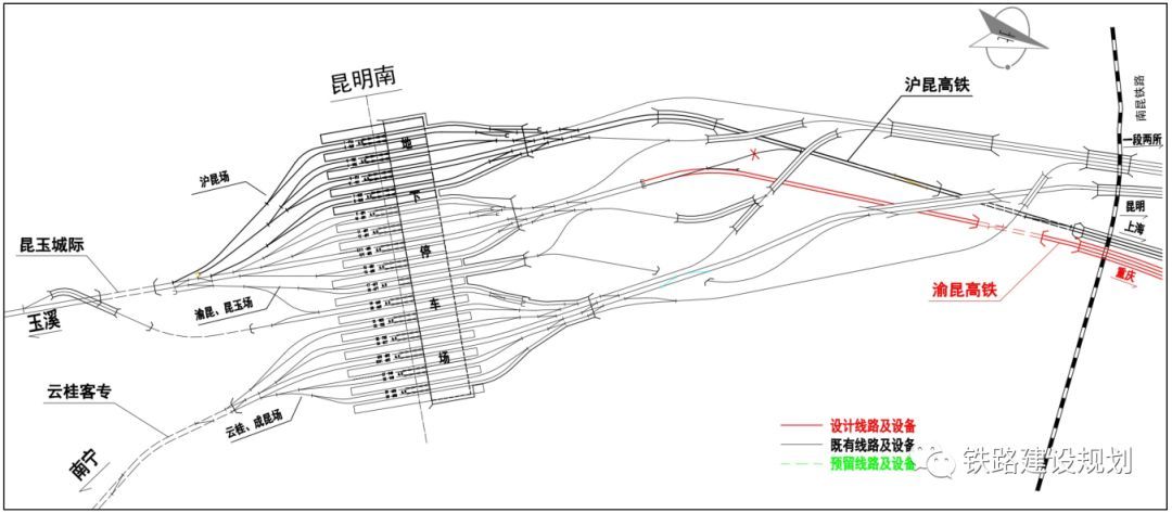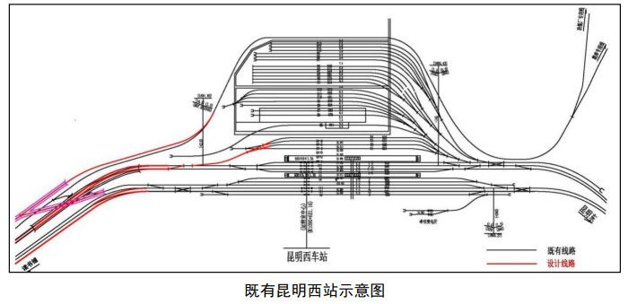 另昆明枢纽新建昆明西站纳入渝昆高铁建设,位于西山区石咀,未来将作为昆明普速列车的始发站,现有昆明站将主要发送省内动车。