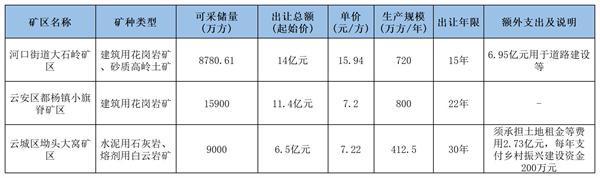 值得注意的是,云城区云初大窝塘矿区出让时,竞得者需另行支付约12.25 亿元用于道路建设等配套工程。